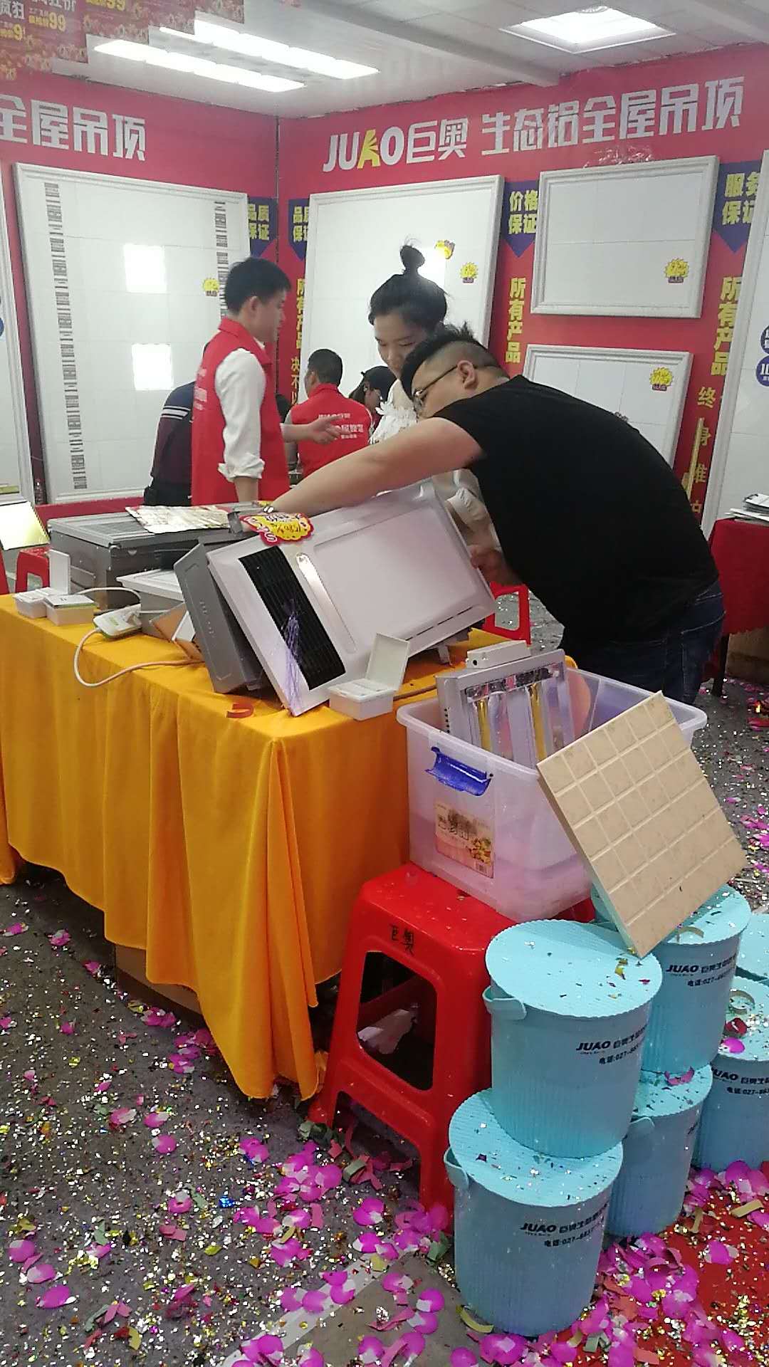 巨奧展位里,多款巨奧的明星產品閃亮登場,為大家展現了巨奧產品在外形和美觀程度上略勝一籌。詮釋了巨奧集成頂墻高端集成品牌,吸引了各位業主紛紛下單。